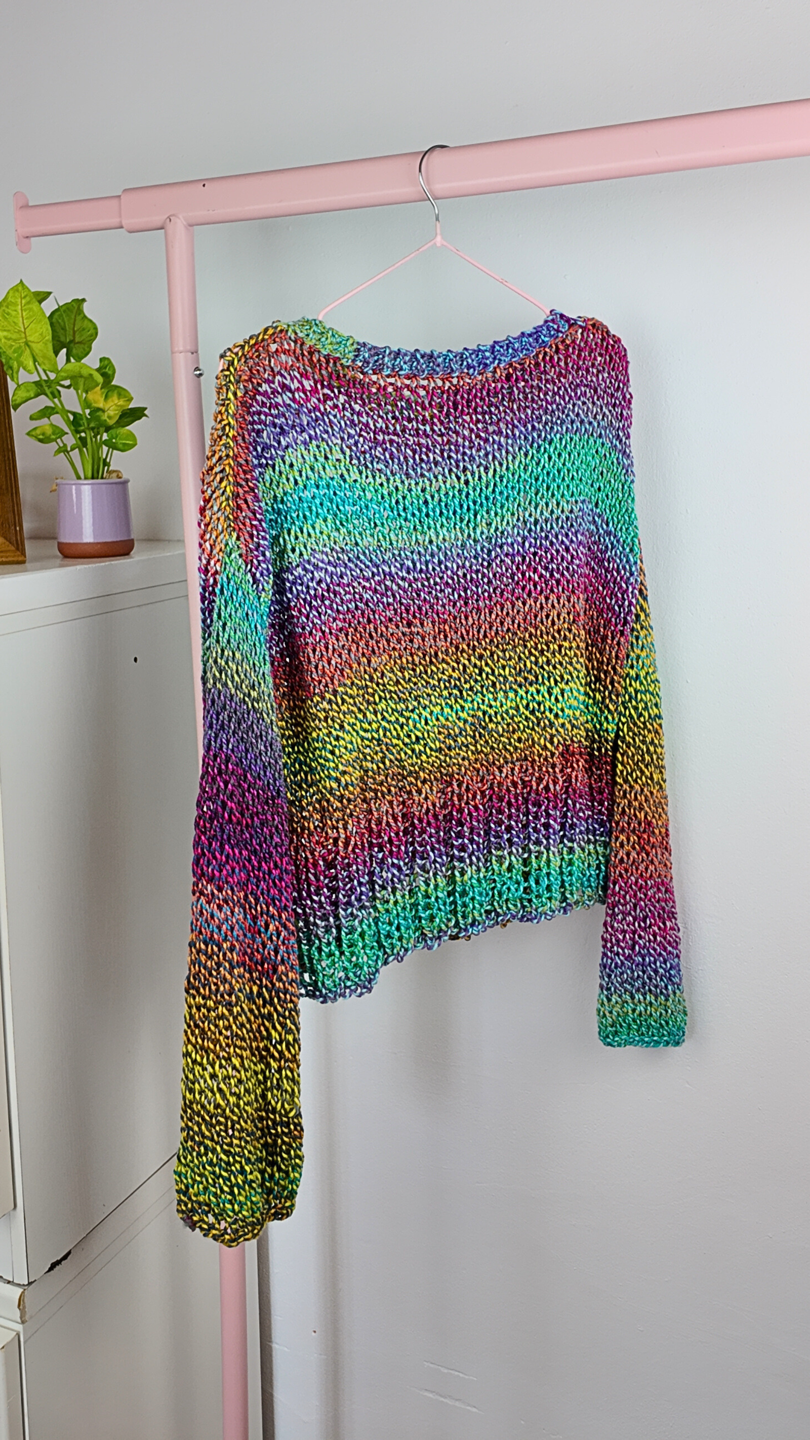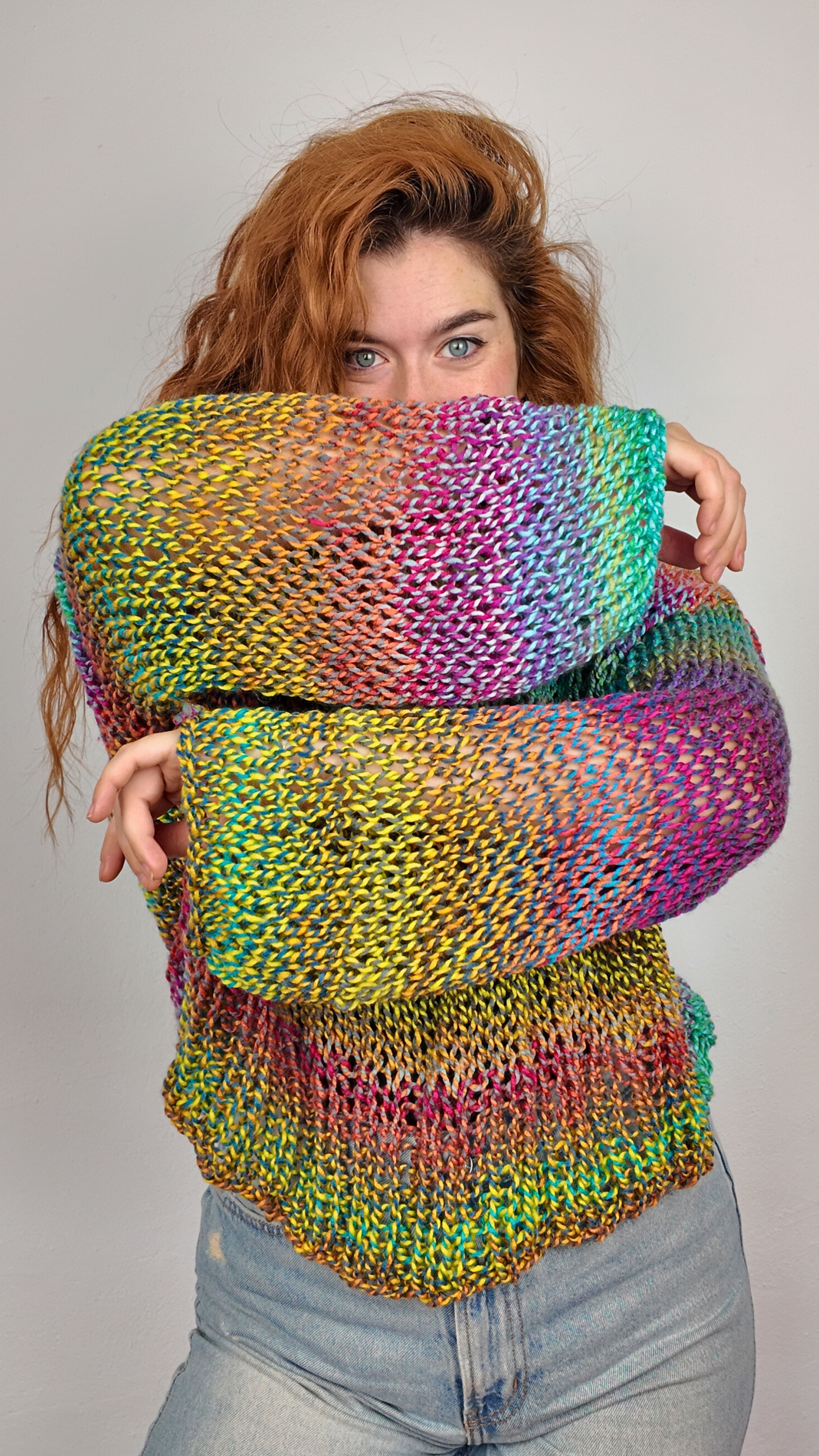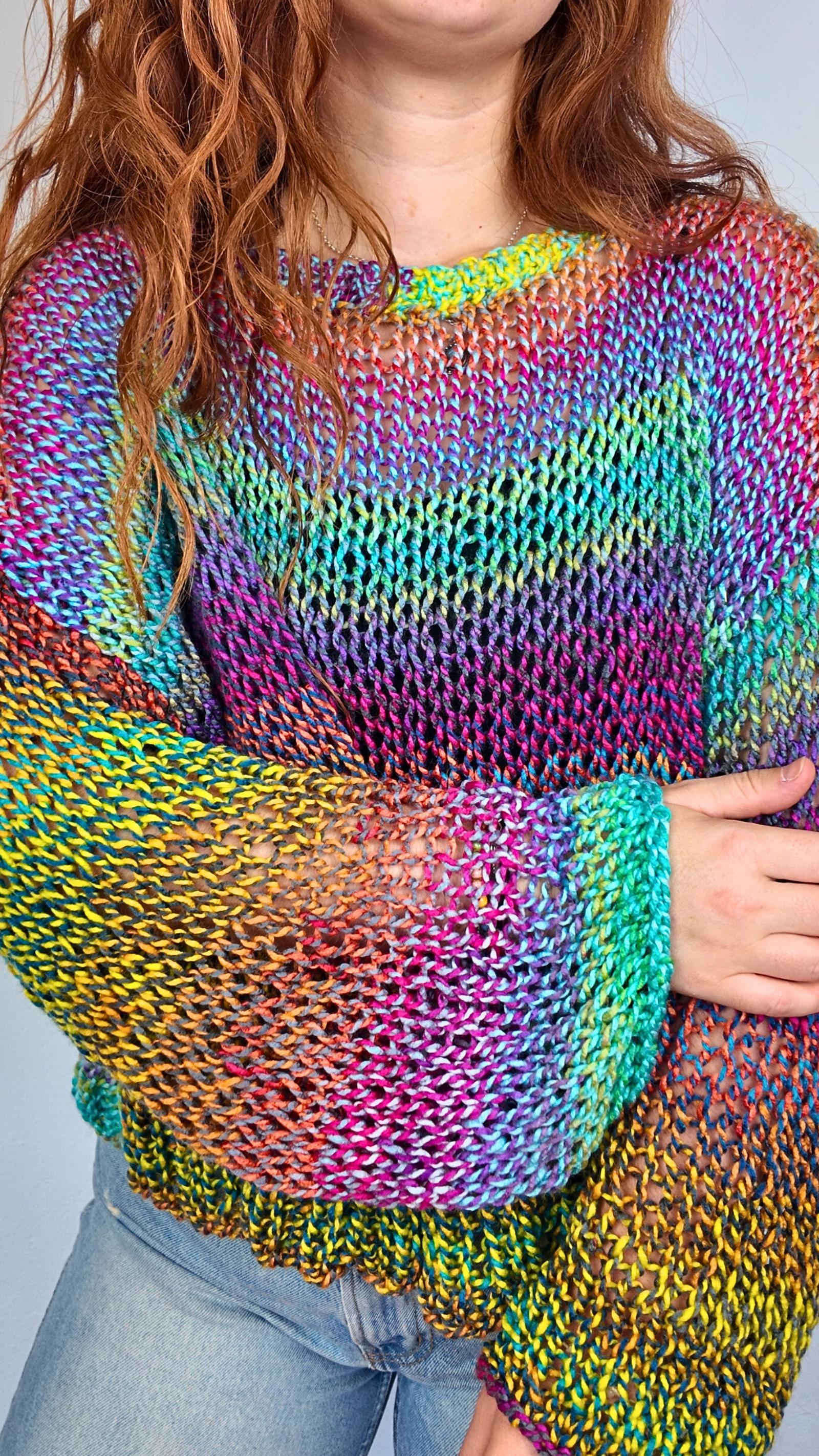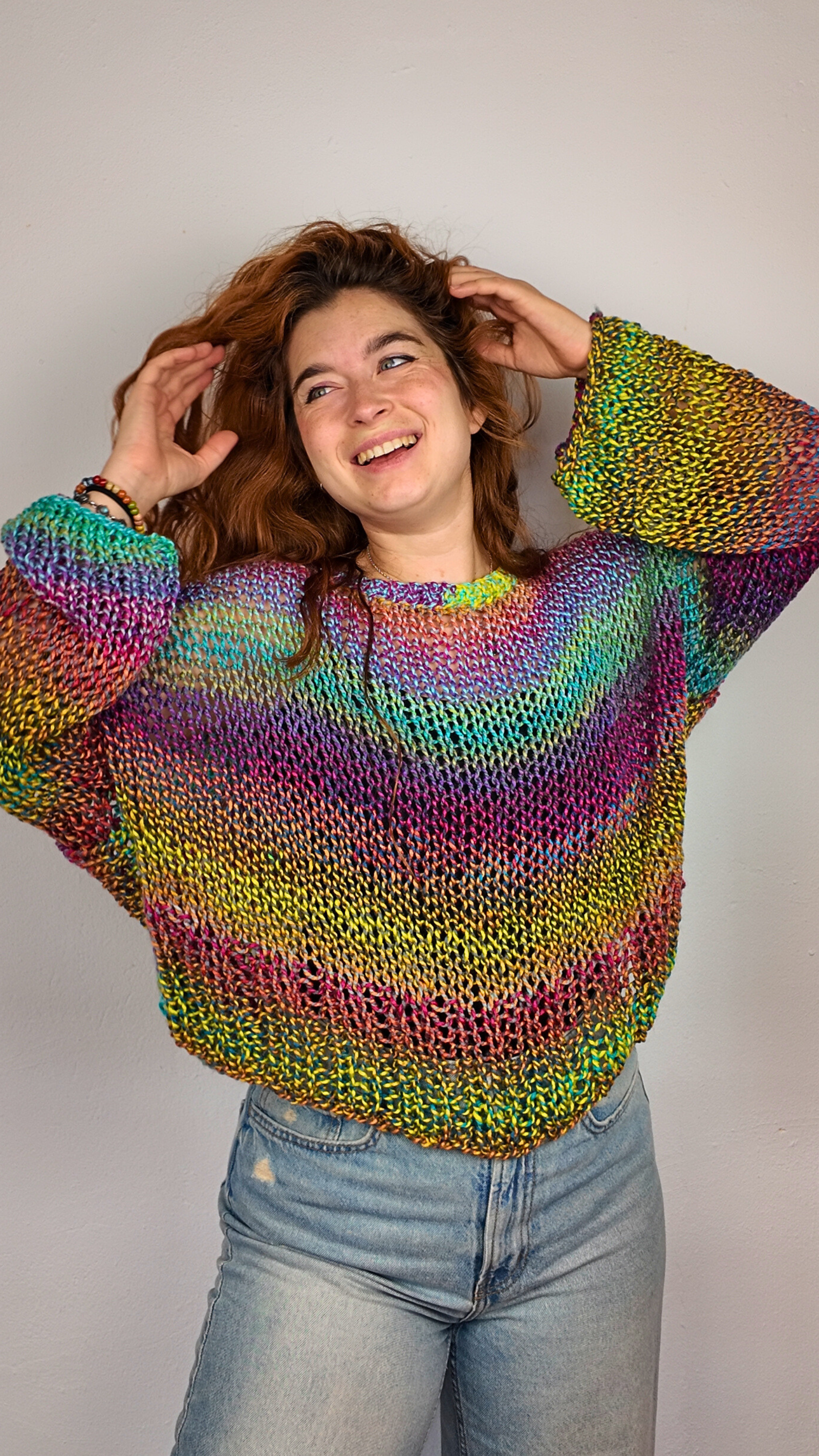 Luce un estilo único y lleno de vida con este precioso jersey artesanal. Tejido con hilos en tonos vibrantes que se funden en un efecto arcoíris, cada pieza es irrepetible y especial. Suave, ligero y cómodo, ideal para usar en entretiempo o darle un toque alegre a tus looks casuales. Diseño oversize con caída relajada, perfecto para combinar con jeans o faldas. Hecho con amor y dedicación, pensado para quienes disfrutan llevar prendas diferentes y llenas de color.